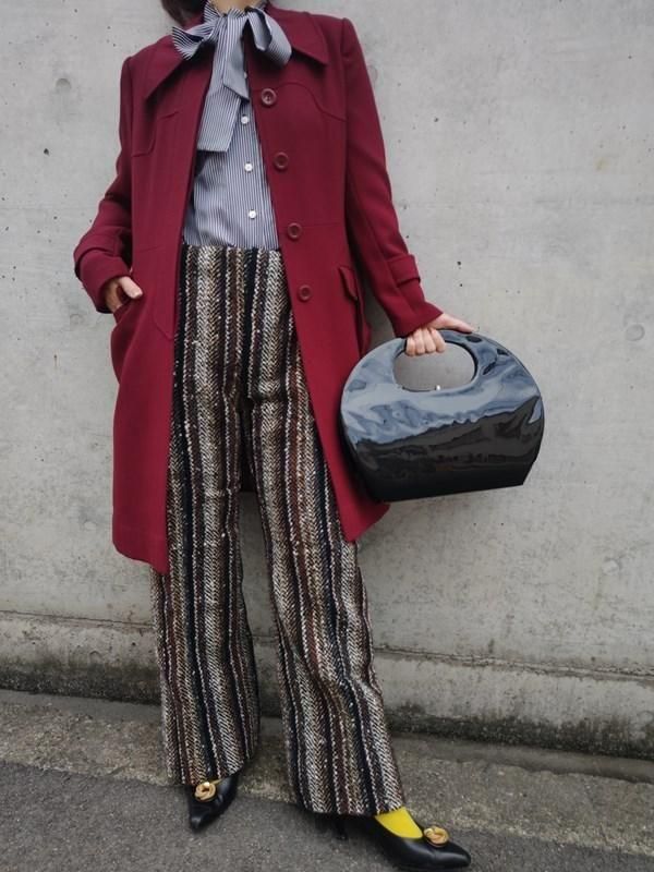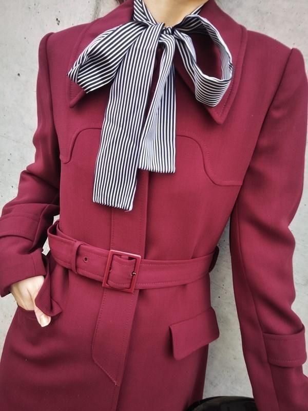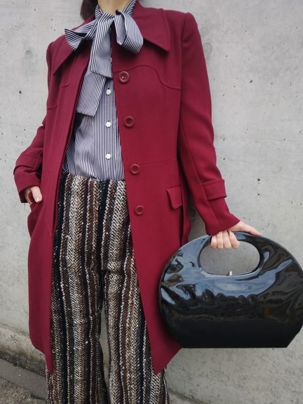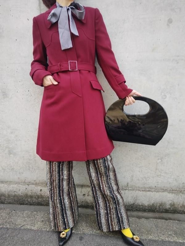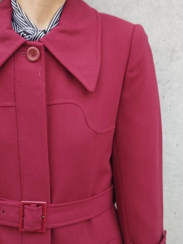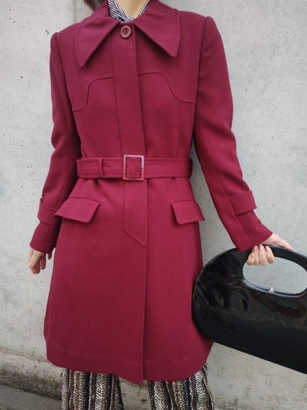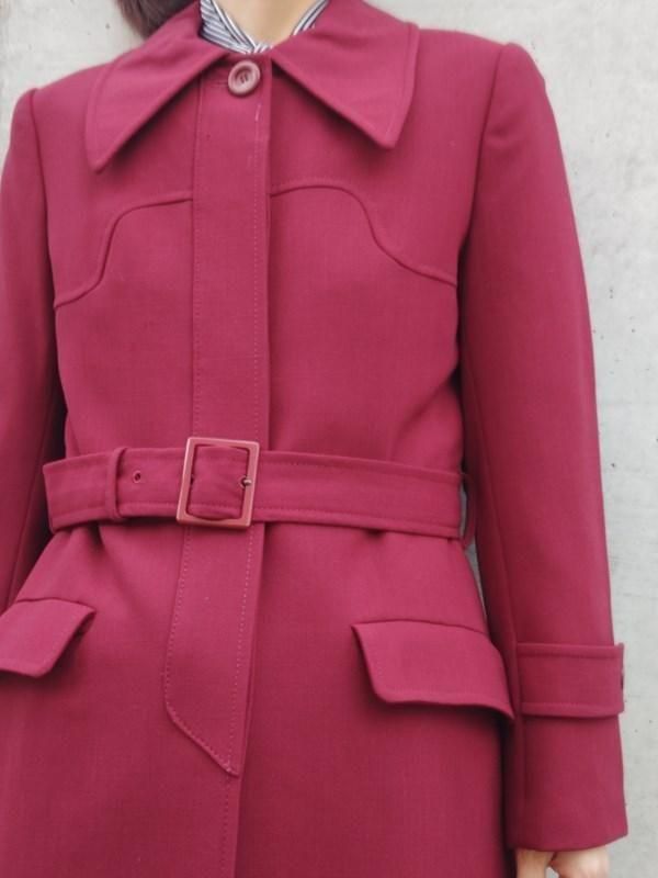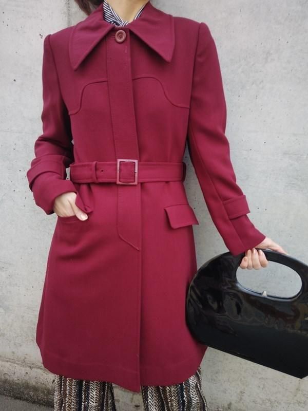 サンヨー*ワインレッド★ベルト付きレトロコート