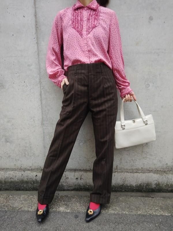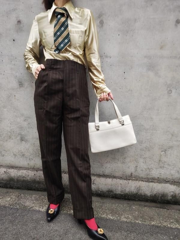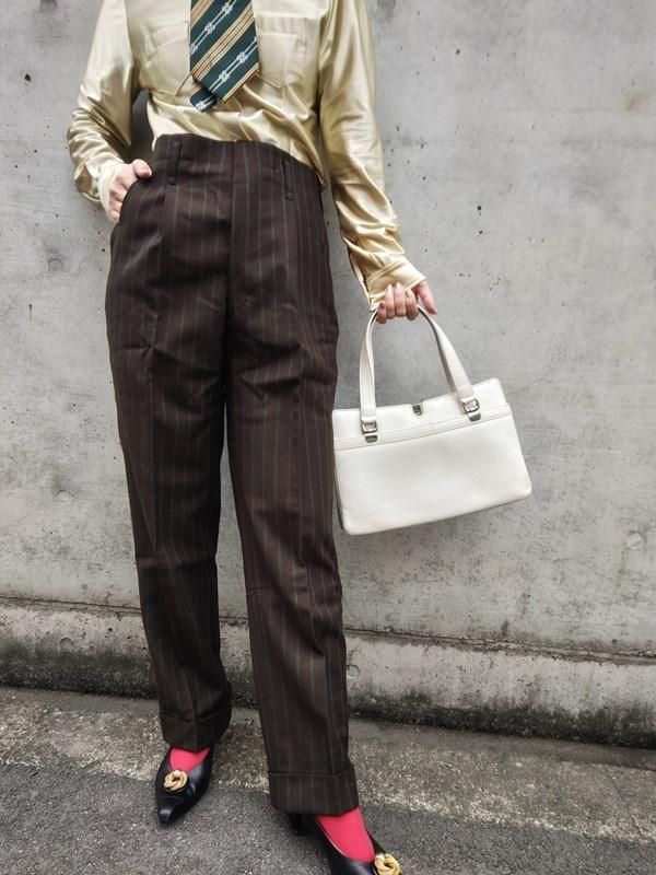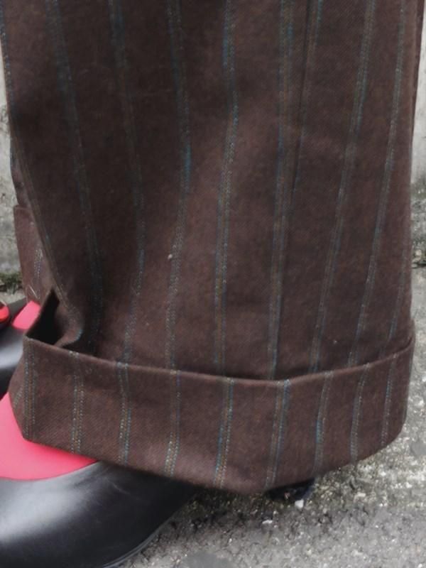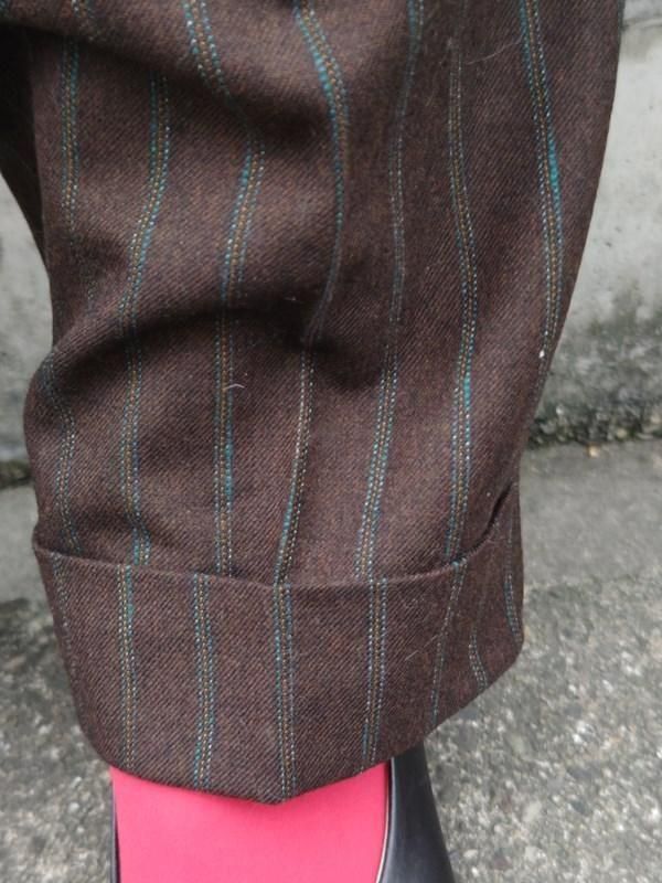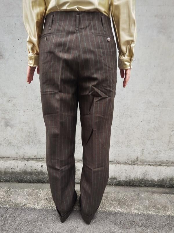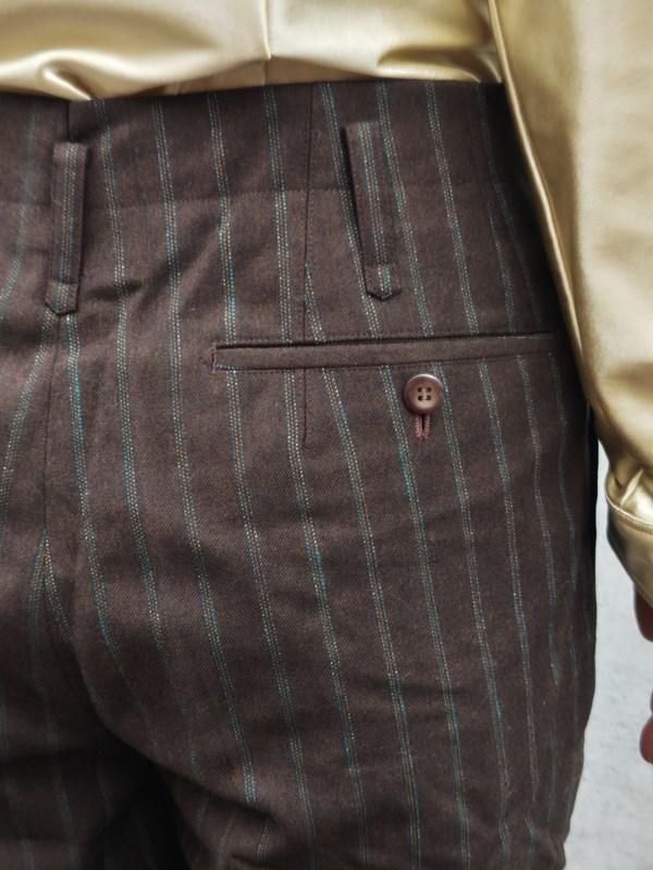 ダークブラウンxキャメル・ブルーストライプ★モダンパンツ