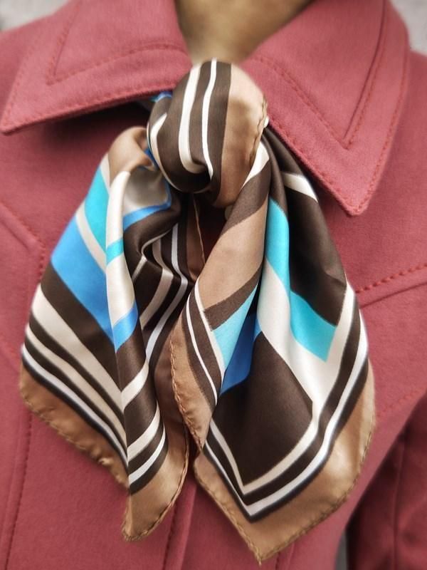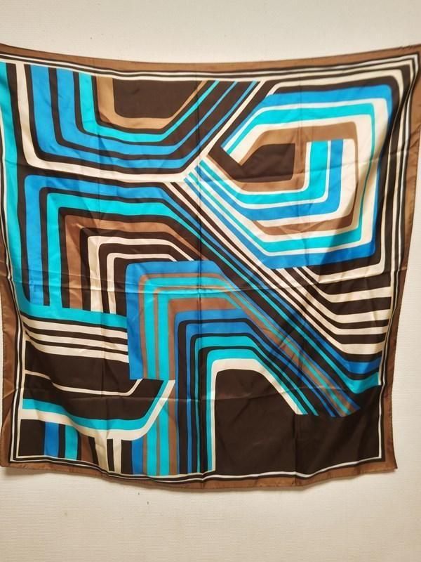 ブルー・ブラウン柄★レトロモダンスカーフ