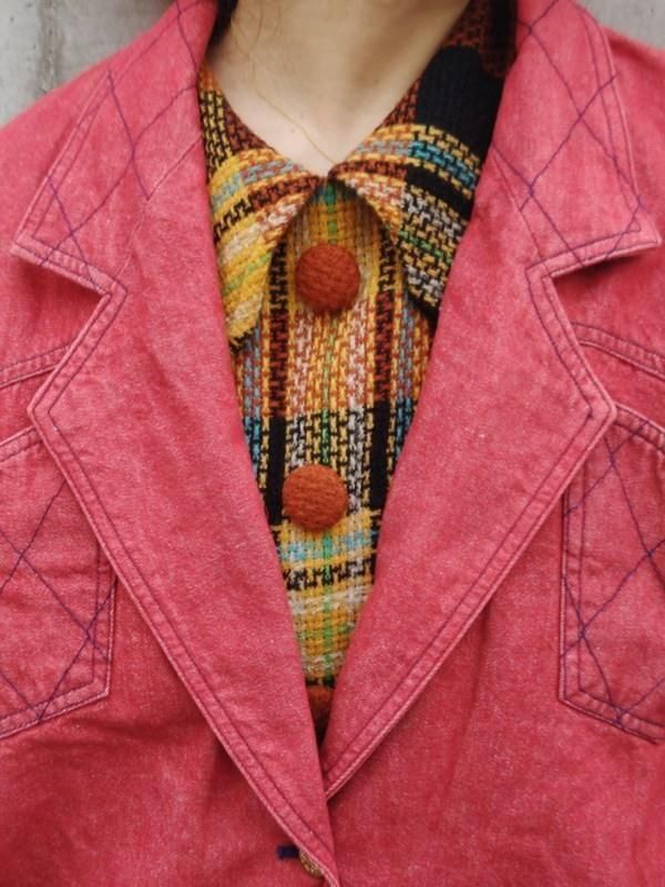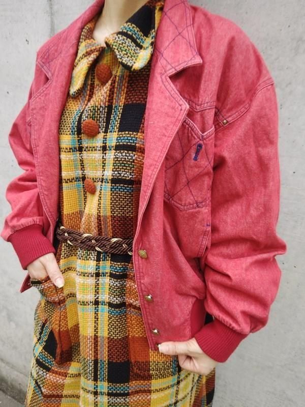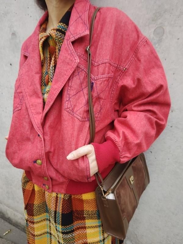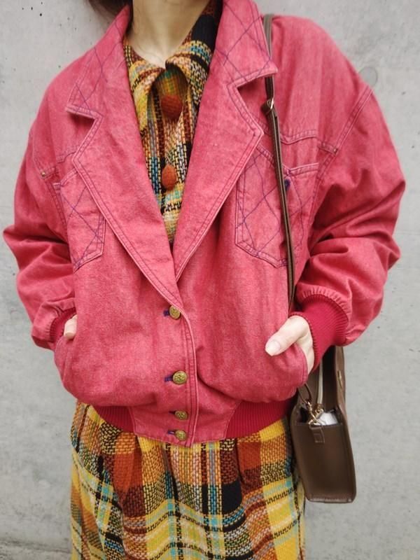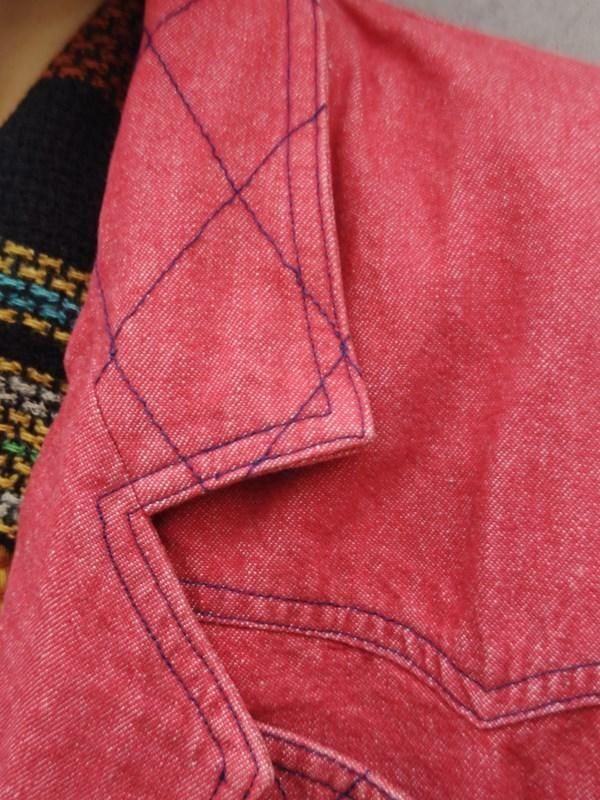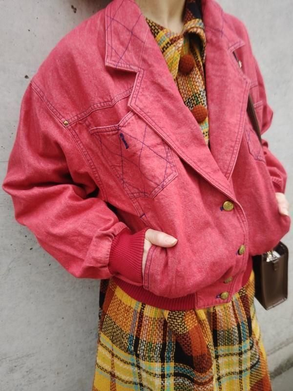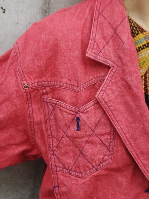 レナウン*赤デニム・紺ステッチ★レトロジャンパー