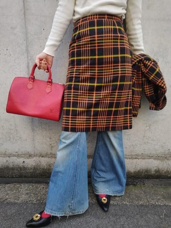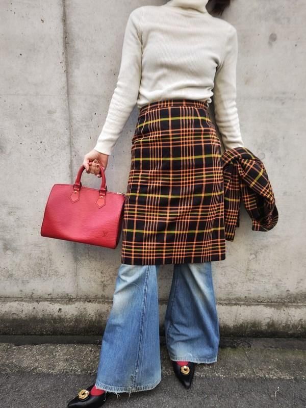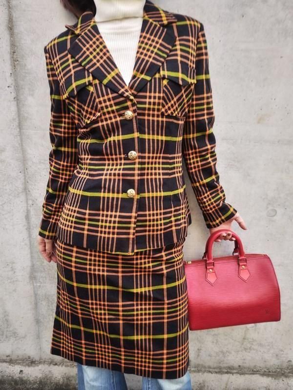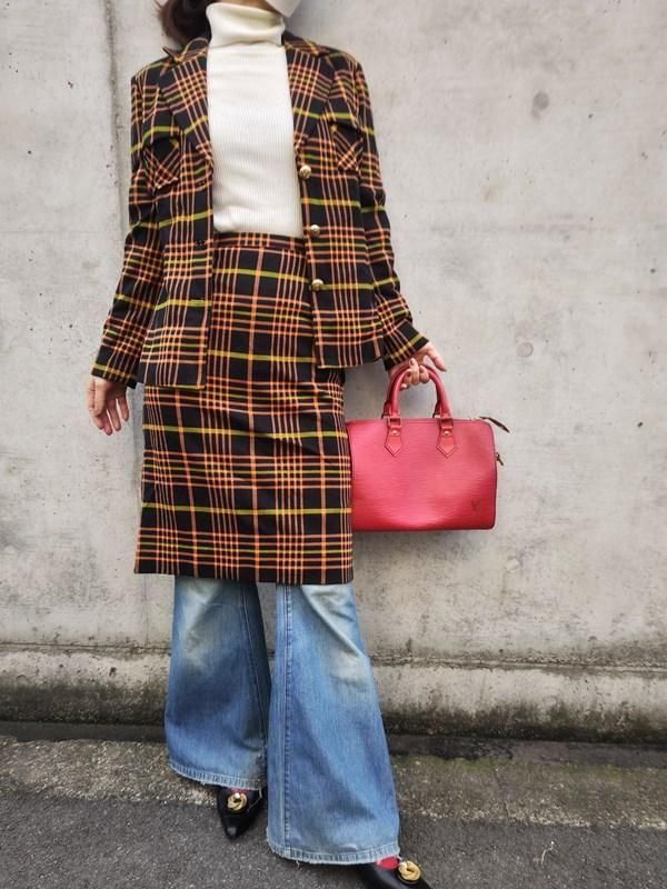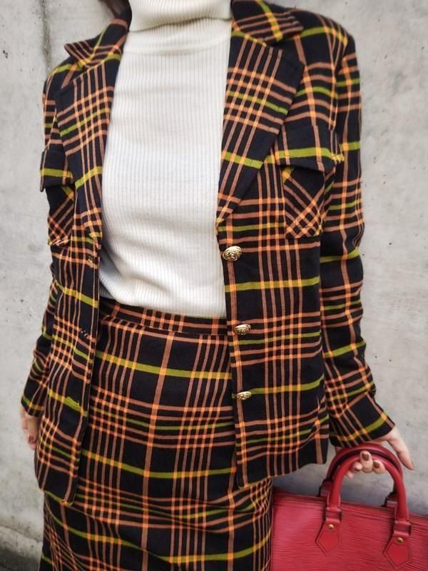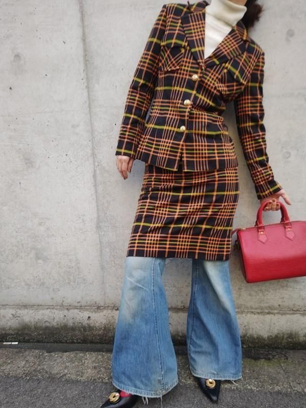 黒xオレンジ・緑チェック柄♪レトロセットアップ