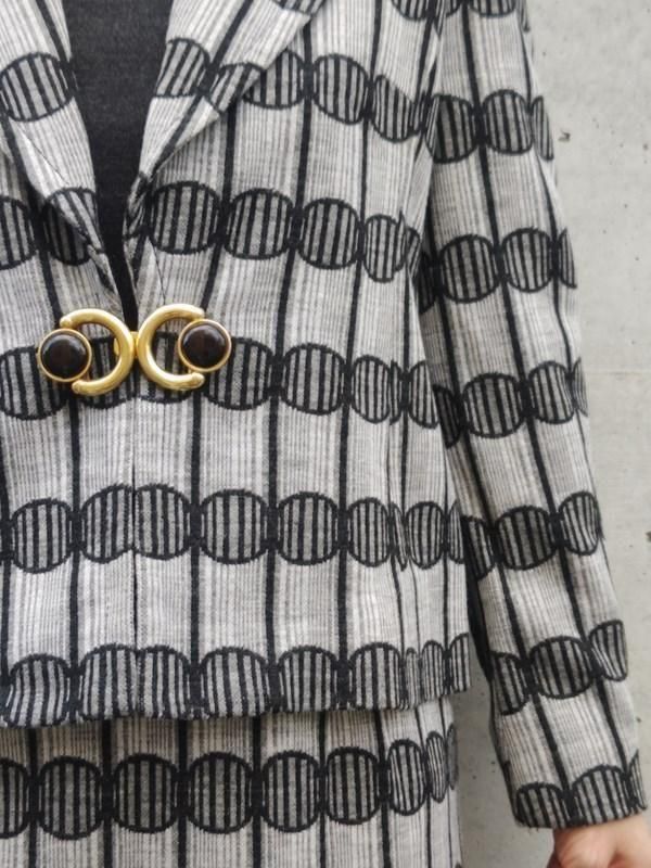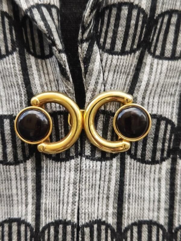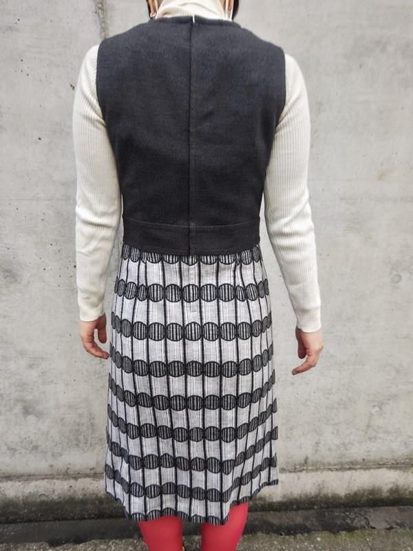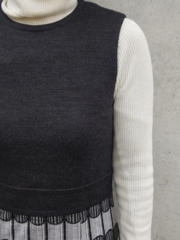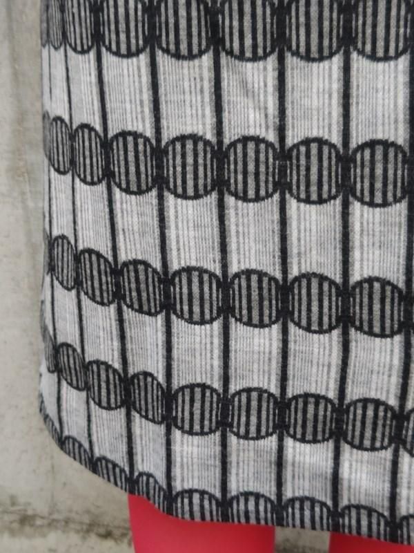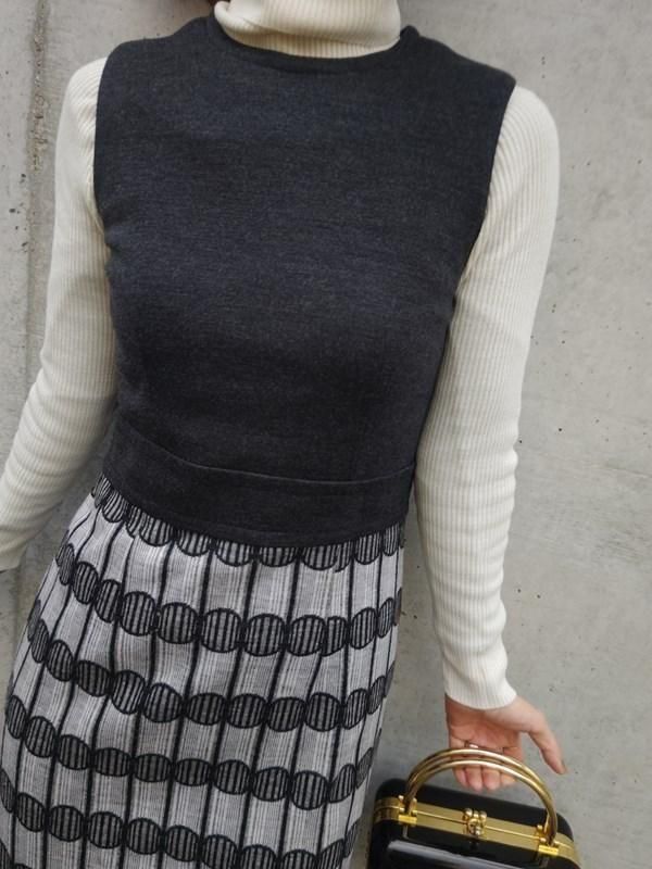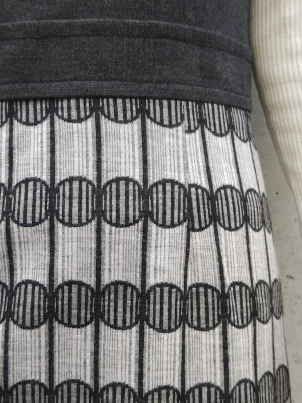 グレー無地x柄切り替えのワンピースに、豪華バックル