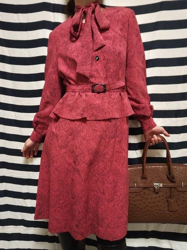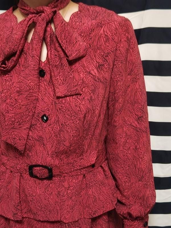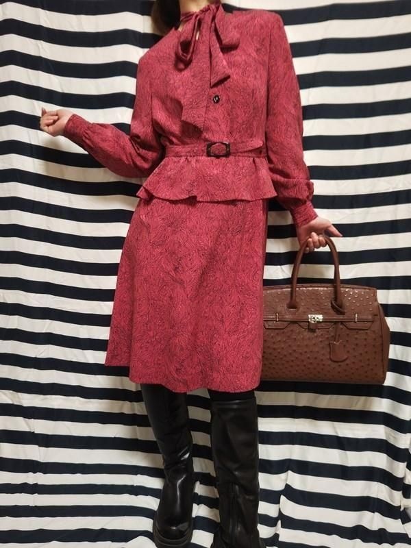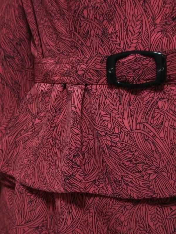 波型襟ぐり、ベルト付き、背中タック、2ピース風デザイン