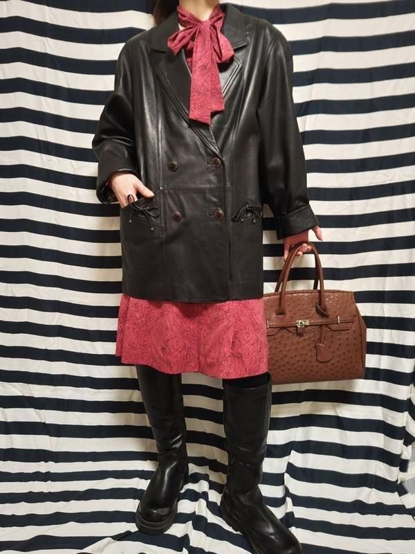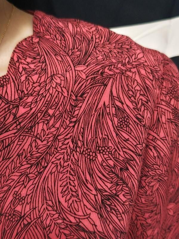 ピンクx黒の植物満開柄がレトロで雰囲気たっぷり。