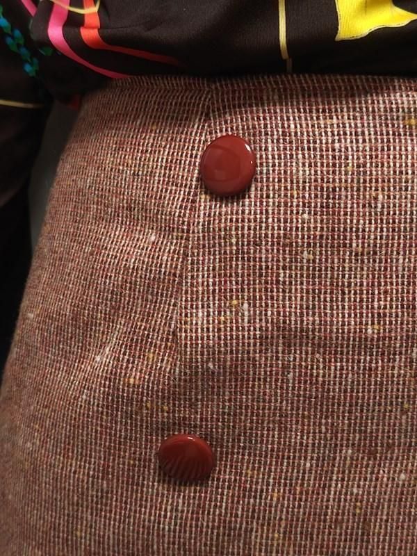 大きなブラウンダブルボタン&ミニ丈が魅力で
